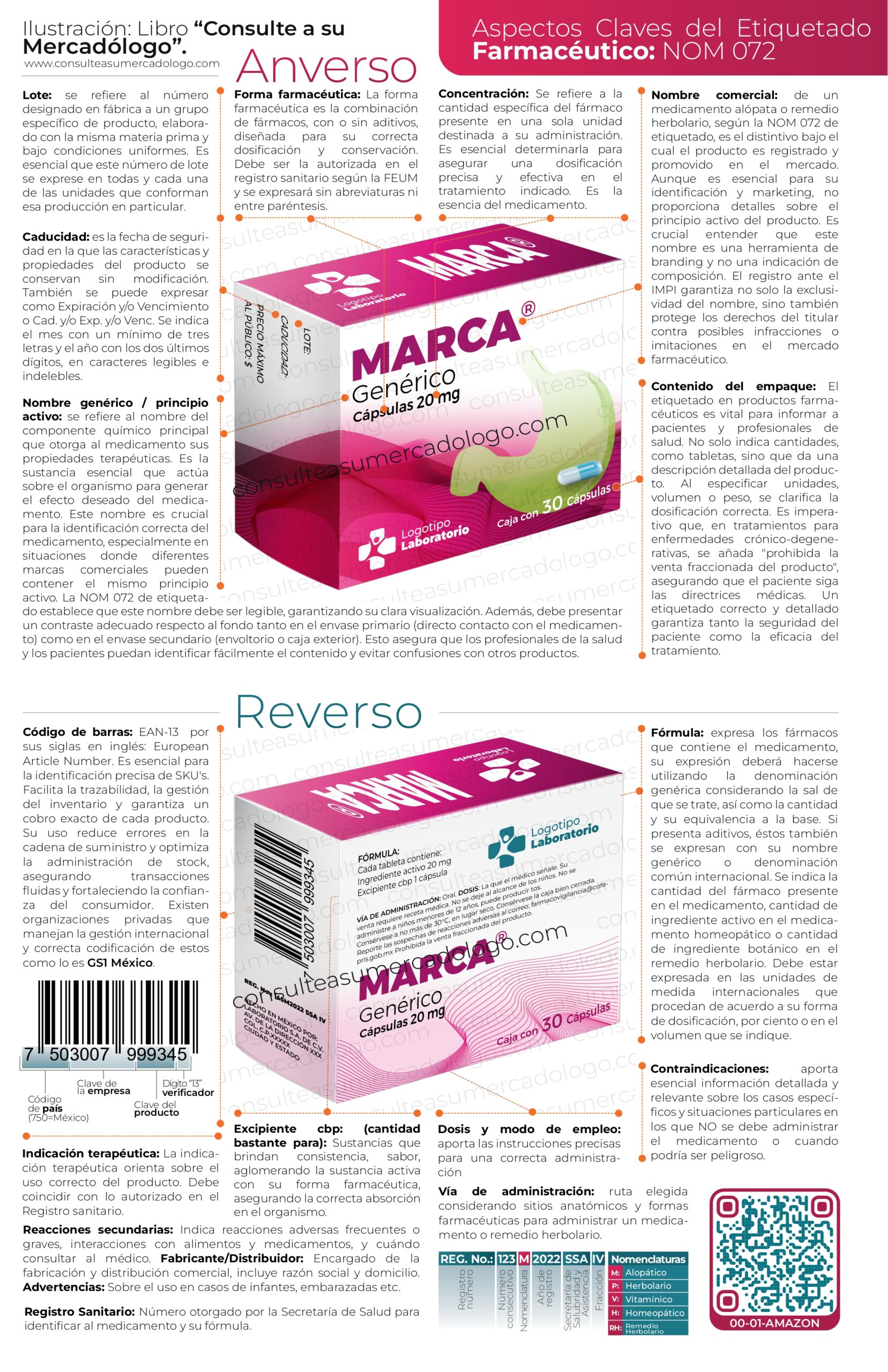 Esta infografía, extraída directamente de mi libro “Consulte a su Mercadólogo”, ofrece una representación clara, ordenada y práctica de los elementos fundamentales que debe contener un empaque farmacéutico conforme a la NOM-072-SSA1-2012, destacando la importancia del etiquetado correcto, la dosificación, la información terapéutica y la trazabilidad del producto.